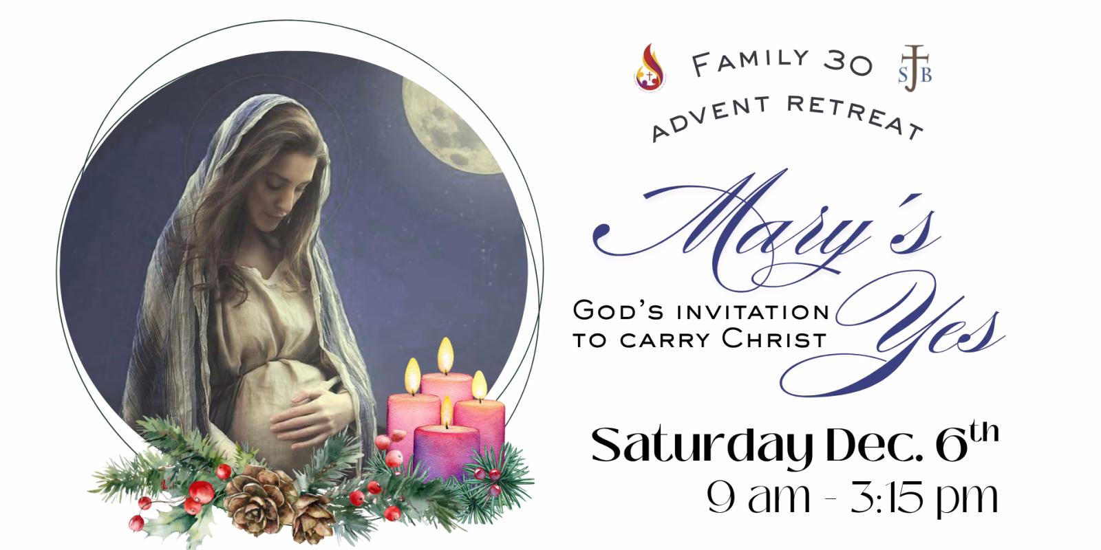 Step into Advent with a day set aside for prayer, learning, and community with our Family 30 (St. John the Baptist & Holy Spirit). We’ll reflect on Luke’s Gospel and Mary’s “yes,” making room in our hearts to carry Christ into the world.