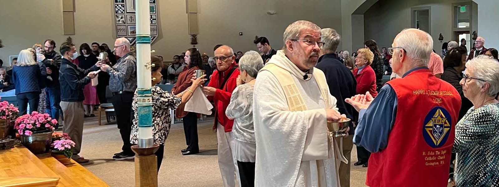 A ministry once born of practical necessity is now an expression of the variety of ministries here at St. John the Baptist. It is an opportunity for laypeople to show the community’s respect for the real presence of Christ and its joy in Holy Communion. If the Spirit is calling you to serve in this ministry, please contact Pat Defiesta for more information.